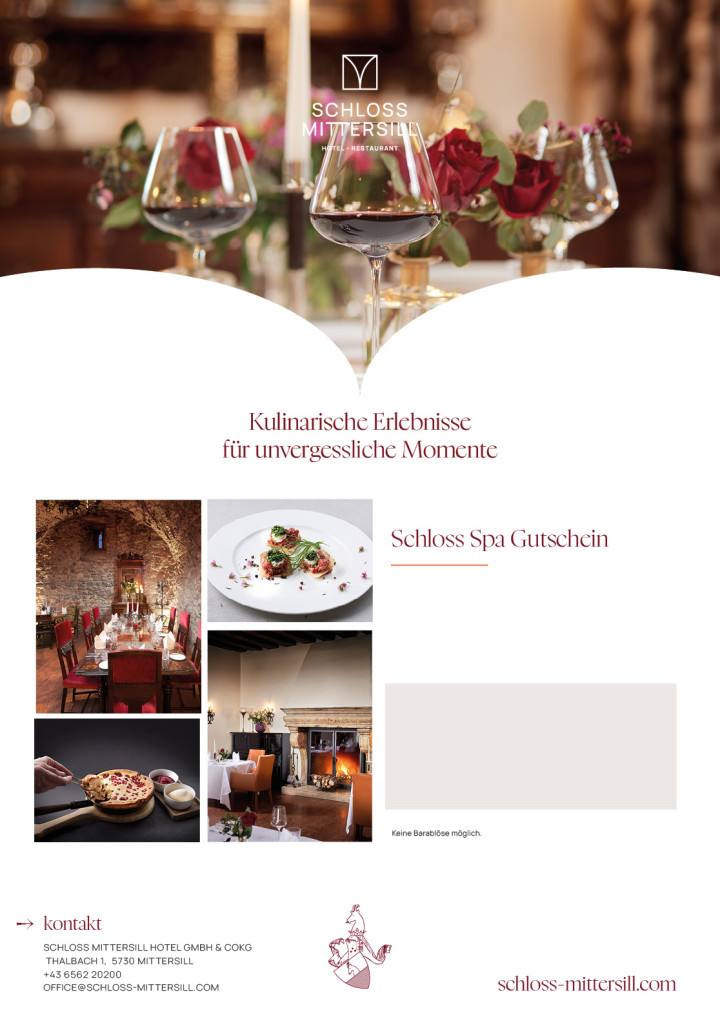 Für ganz persönliche Glücksmomente im Hotel Schloss Mittersill. <br>Sich verwöhnen lassen und den Augenblick in vollen Zügen genießen.
